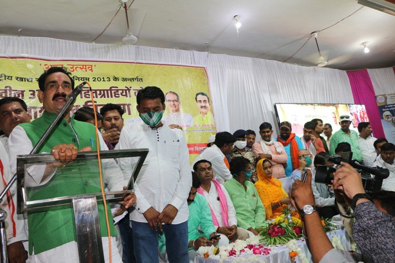 दतिया के वृन्दावन धर्मषाला में अन्न उत्सव कार्यक्रम आयोजित हुआ। उन्होने खादान्न की गरीब परिवारों को पात्रता पर्ची दी इस योजना में दतिया जिले के जिले में 68 हजार हितग्राहीयों को लाभ मिलेगा