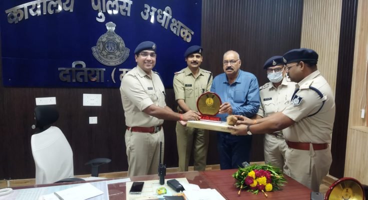 इस अवसर पर अतिरिक्त पुलिस अधीक्षक श्री कमल मौर्य, एसडीओपी सेवढ़ा श्री यू.के. दीक्षित, रक्षित निरीक्षक श्री रविकांत शुक्ल, एवं अन्य स्टाफ उपस्थित रहा।