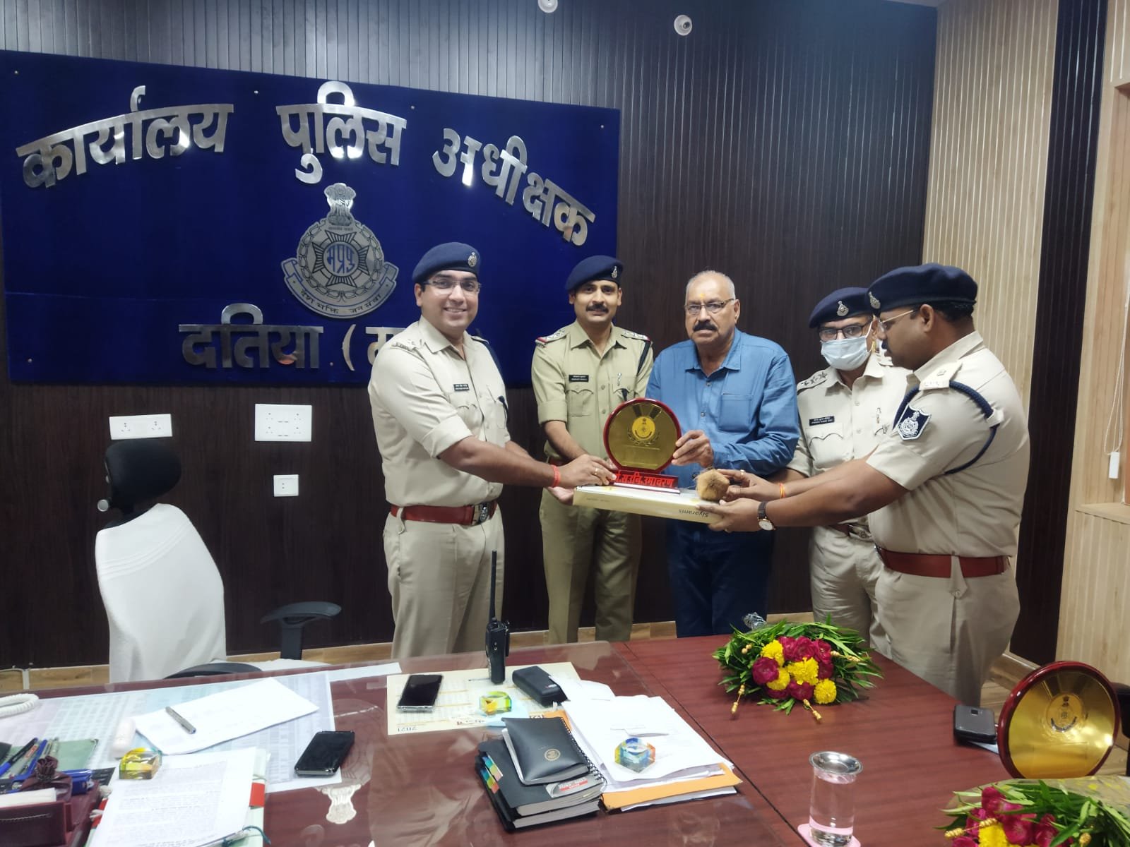 पुलिस अधीक्षक महोदय दतिया द्वारा सेवानिवृत्त पुलिस अधिकारियों के सेवा निवृत्त उपरांत आगामी भविष्य के लिए शुभकामनाएं दी गयी।