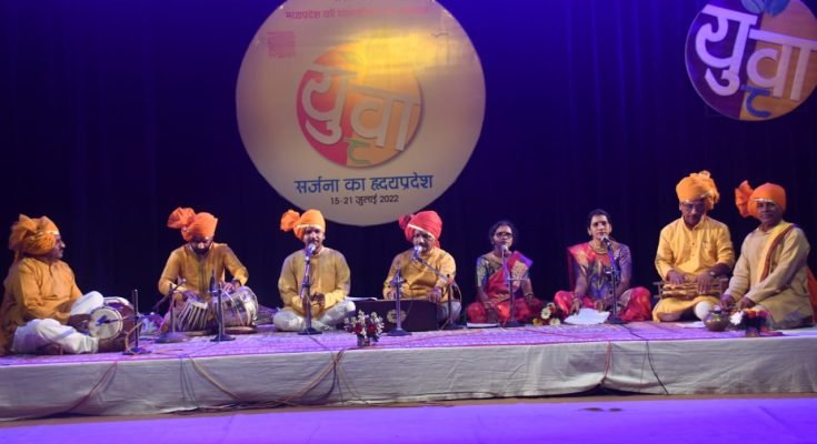 भोपाल भारत भवन में बुंदेली गीतों की प्रस्तुति दतिया के कलाकारों ने दी।