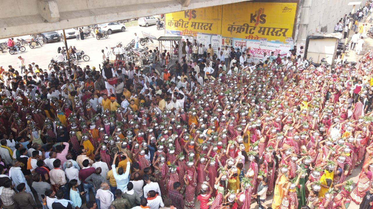 दतिया——— मध्यप्रदेश शासन के गृह, जेल, संसदीय कार्य एवं विधि विधायी विभाग के मंत्री डॉ. नरोत्तम मिश्रा गोराघाट में होने वाली श्रीमद् भागवत सप्ताह ज्ञान कथा की कलश यात्रा में शामिल हुए। इस दौरान उन्होंने कथा व्यास आचार्य बालमुकुंद जी महाराज का पुष्पमाला से स्वागत किया । कलश यात्रा में उमड़ा जनसैलाब।आयांेजन में सेकडो की संख्या मंे महिलाओं ने सर पर कलश रखकर आयोजन स्थल तक पहुची जहां ग्रहमं़त्री ने पुष्प वरसाकर स्वागत किया इस दौरान आयोजन कि भव्यता देखते ही वन रही थी।