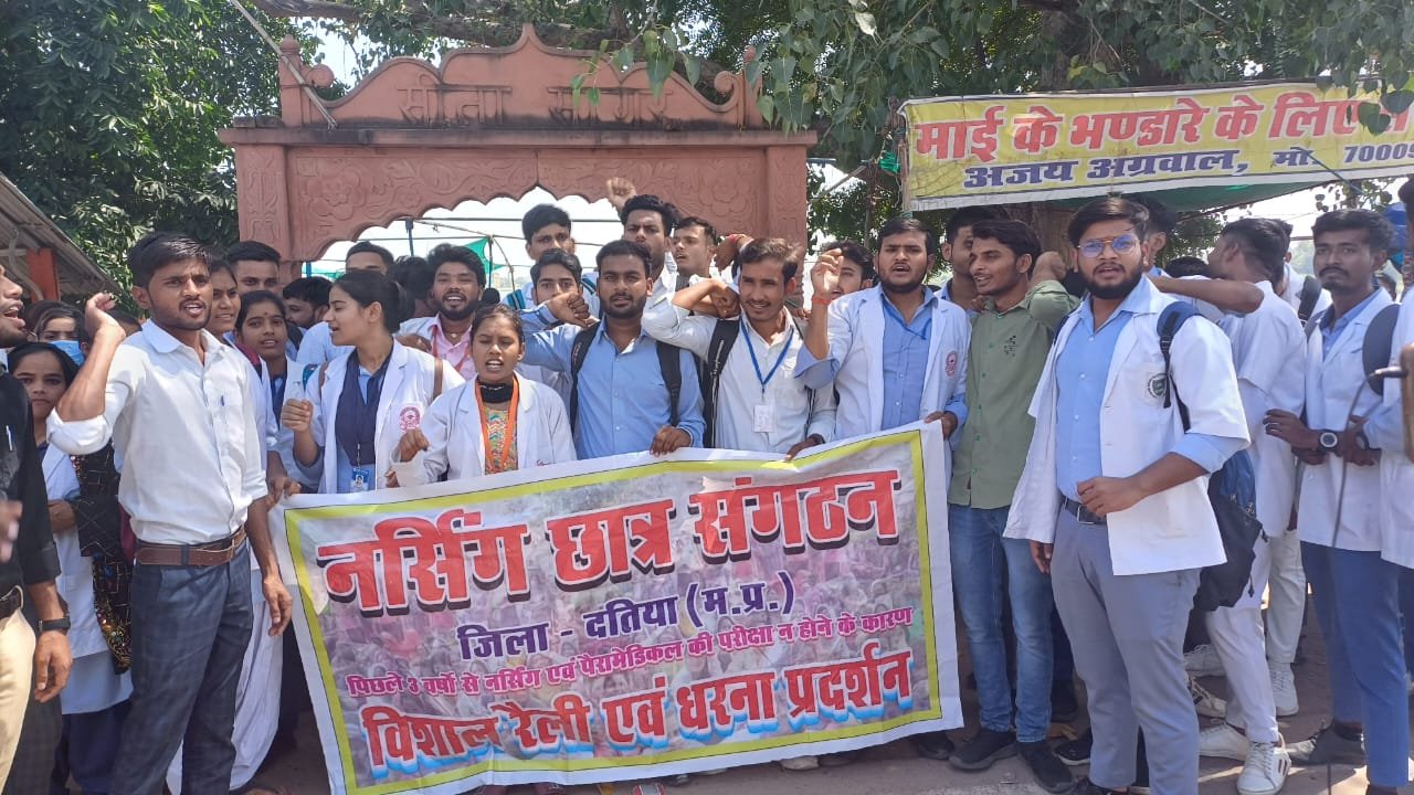 दतिया में नर्सिंग छात्र संगठन ने रैली निकाल कर धरना प्रदर्शन किया