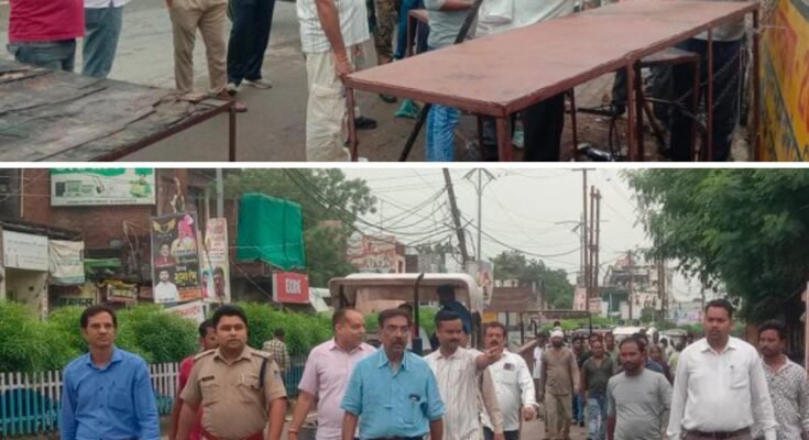 पीतांबरा मंदिर के बाहर दुकानदारों ने 5 फुट से अधिक बढ़ाया अतिक्रमण, प्रशासन ने किया सामान जप्त