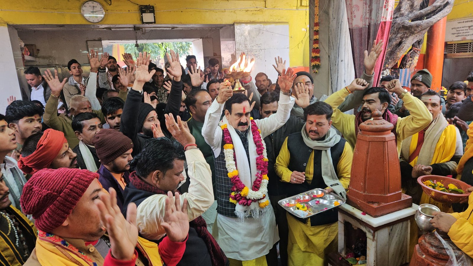 देश के प्रधानमंत्री श्री नरेंद्र मोदी ने आज पूरे देश के मंदिरों पर इस स्वाभिमान दिवस को मनाने का आवाहन किया है। इस मौके पर प्रदेश के पूर्व गृहमंत्री डॉ नरोत्तम मिश्रा ने सोमनाथ मंदिर पर 1000 साल पहले गजनबी के महमूद द्वारा किए गए मंदिर के हमले को याद किया उन्होंने कहा इससे ज्यादा क्रूरता क्या होती है। आम लोगों को तो छोड़ो इन्होंने धार्मिक मंदिरों को भी नहीं बक्शा। उन्होंने उसे समय की कठोर निंदा की। डॉ नरोत्तम मिश्रा ने कांग्रेस पर प्रहार करते हुए कहा कांग्रेस किसी धर्म को नहीं मानती ना ही वह सनातन का सम्मान करती है उन्होंने यह भी कहा जी मंदिर पर हम अभिषेक कर रहे हैं इस मंदिर पर राहुल गांधी पहुंचे थे उन्होंने अपना गोत्र तक नहीं बता पाया था जो देश में चर्चा का विषय बना। उन्होंने कहा भारतीय जनता पार्टी सनातन और संस्कृति को लेकर आगे बढ़ती है यही वजह है कि पूरे विश्व में आज देश के प्रधानमंत्री नरेंद्र मोदी के नेतृत्व में भारत का सम्मान है। इस मौके पर पीतांबरा पीठ मंदिर के समस्त पंडित पुजारी और भारतीय जनता पार्टी जिला अध्यक्ष रघुवीर शरण कुशवाहा, महामंत्री अतुल चौधरी, श्रीमती मीनाक्षी कटारे, आकाश दुबे, रिंकू दुबे, बलदेव राज बल्लू, पुनीत टिलवानी, प्रमुख रूप से उपस्थित थे।
