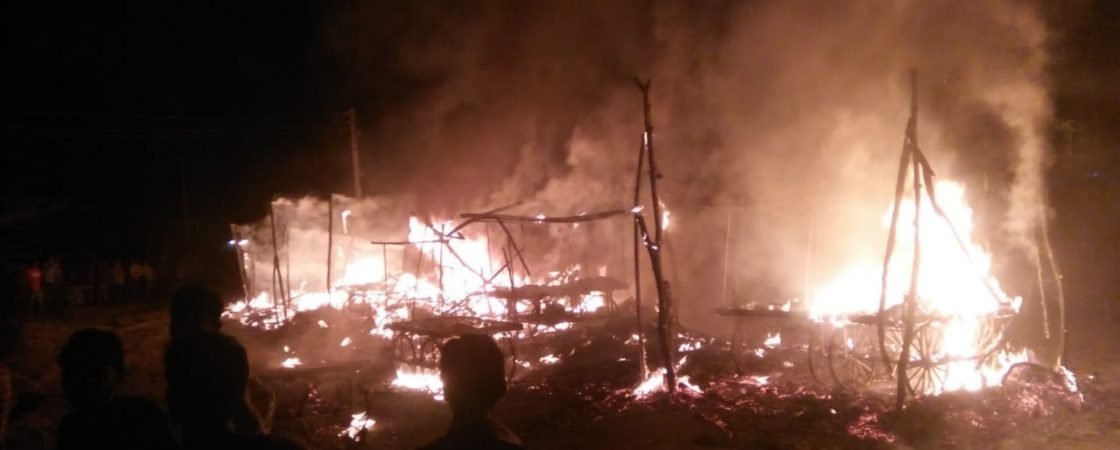 भांडेर सब्जी मंडी में एक दर्जन दुकानों अस्थाई दुकानों में लगी आग लगी 10 लाख से ऊपर का सामान जल कर खाक हुआ।